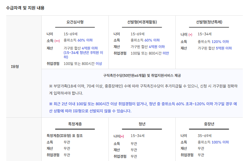 - 점수제 도입: 신청자별 근로경력, 취업의지, 취업취약성, 구직활동 계획 등 종합점수로 선정